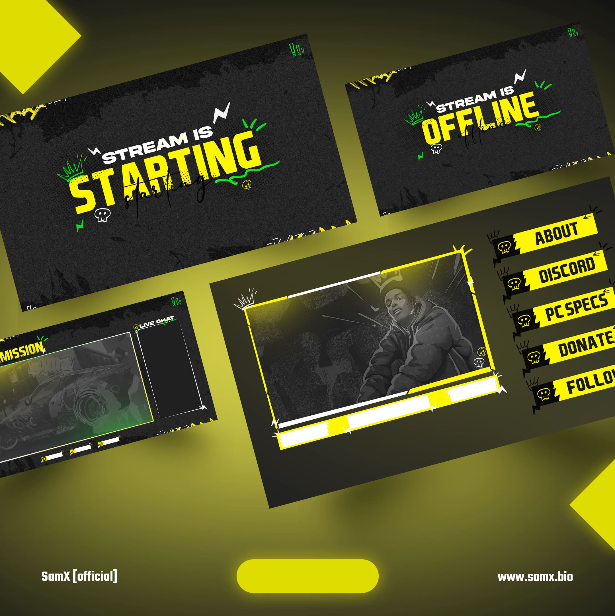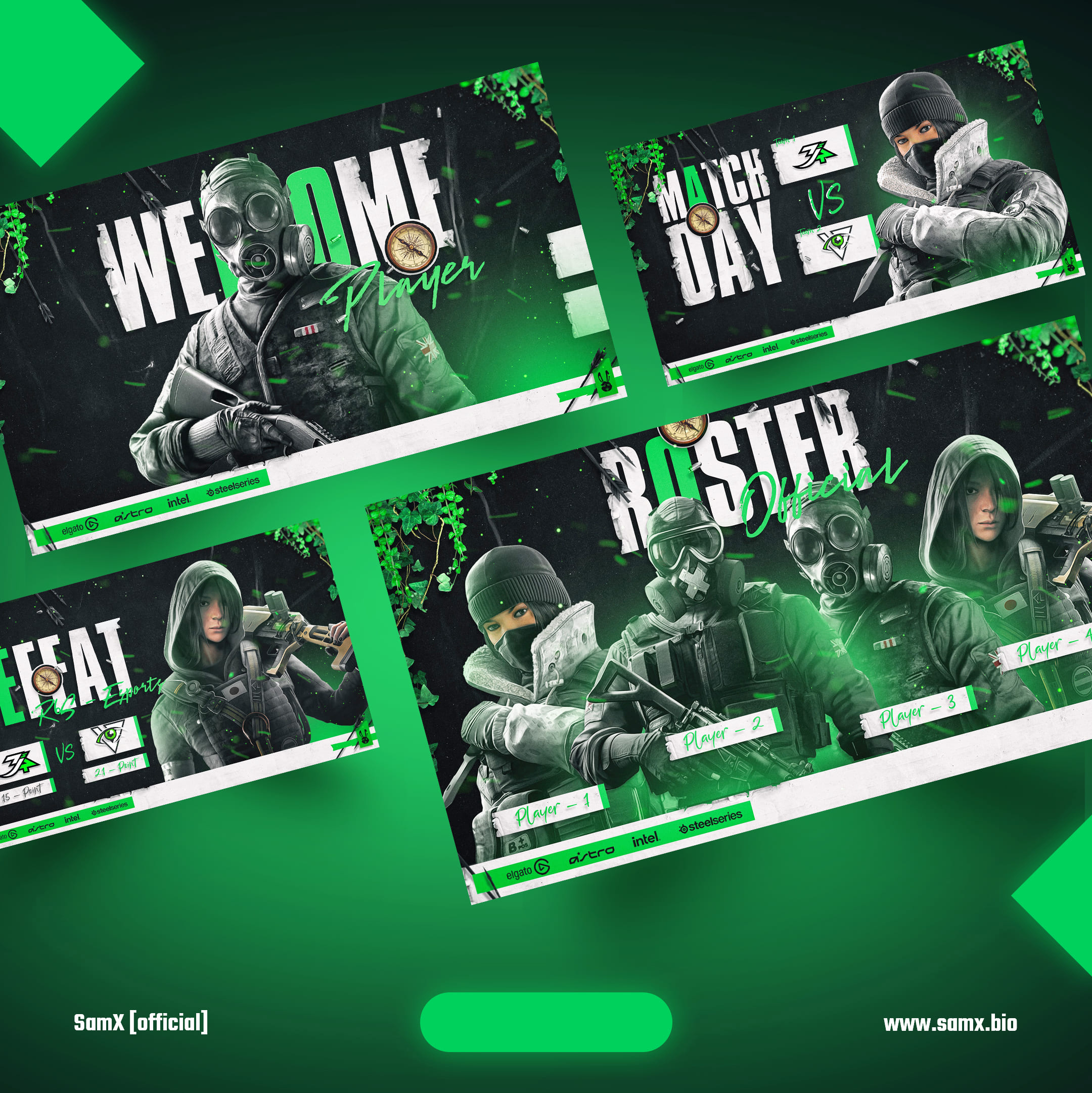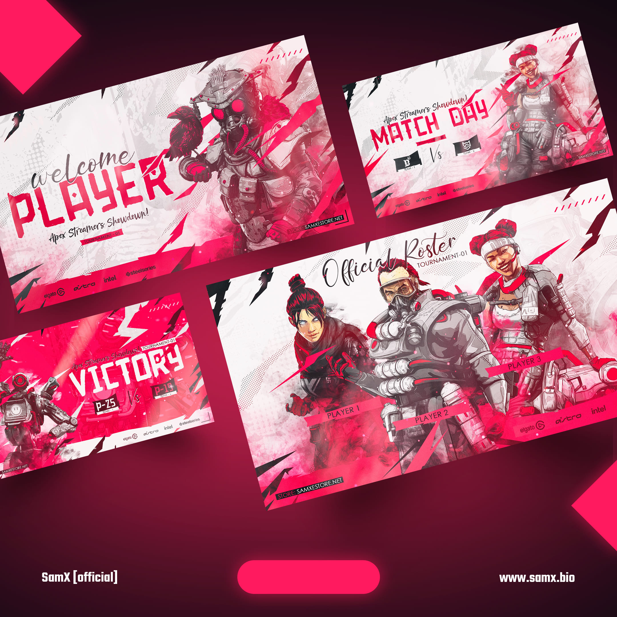 SamX Estore offers an extensive collection of pre-made graphics designs that cover a wide range of esports-related needs. These designs include logos, stream overlays, social media graphics, team jerseys, banners, and more. Each design is meticulously crafted with attention to detail and a deep understanding of the esports aesthetic.